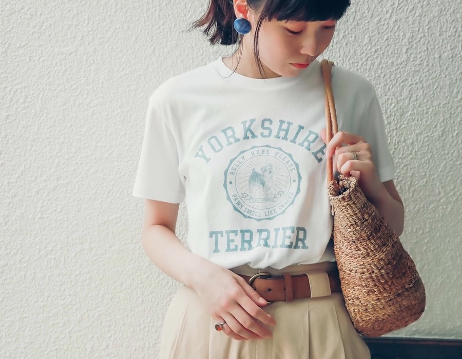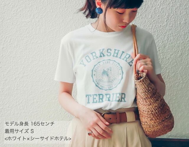 ヴィンテージライクな、ヨークシャーテリアのカレッジ風プリントTシャツです。