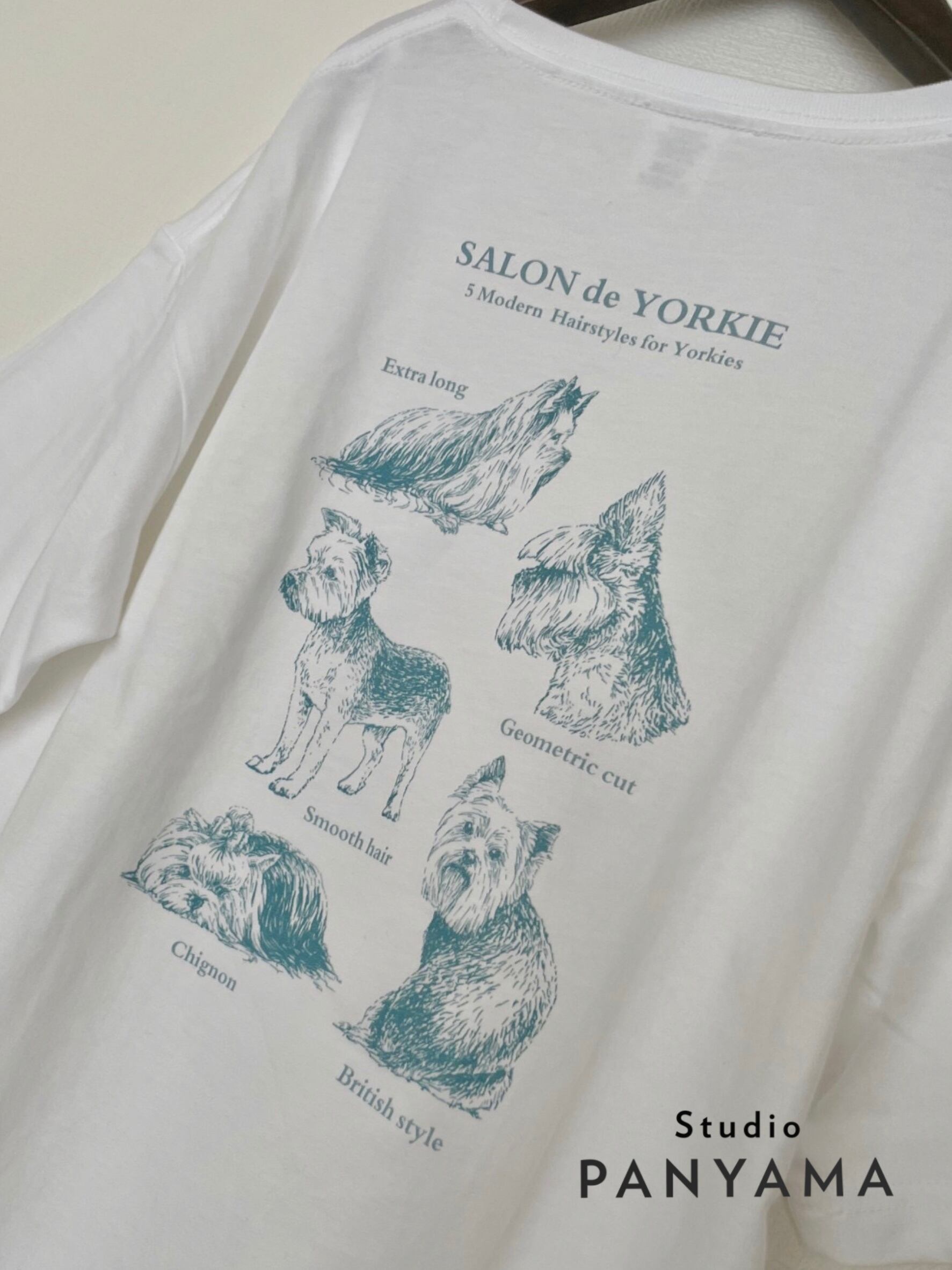 そんなサロンの人気ヘアスタイル集を、繊細な手描きのイラストでTシャツにプリントしました。